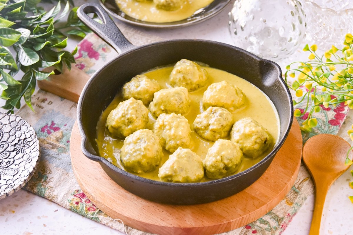 - Albóndigas al curry con coco tostado: Para un toque extra de sabor y textura, añade coco tostado rallado a la salsa antes de servir.