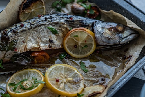 4. Sirve las sardinas con unas rodajas de limón y disfruta.