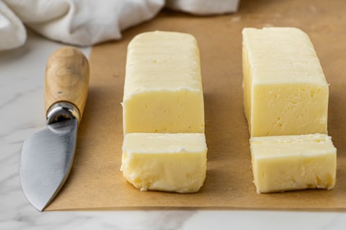 1. Cortar el queso Brie en cubos.
