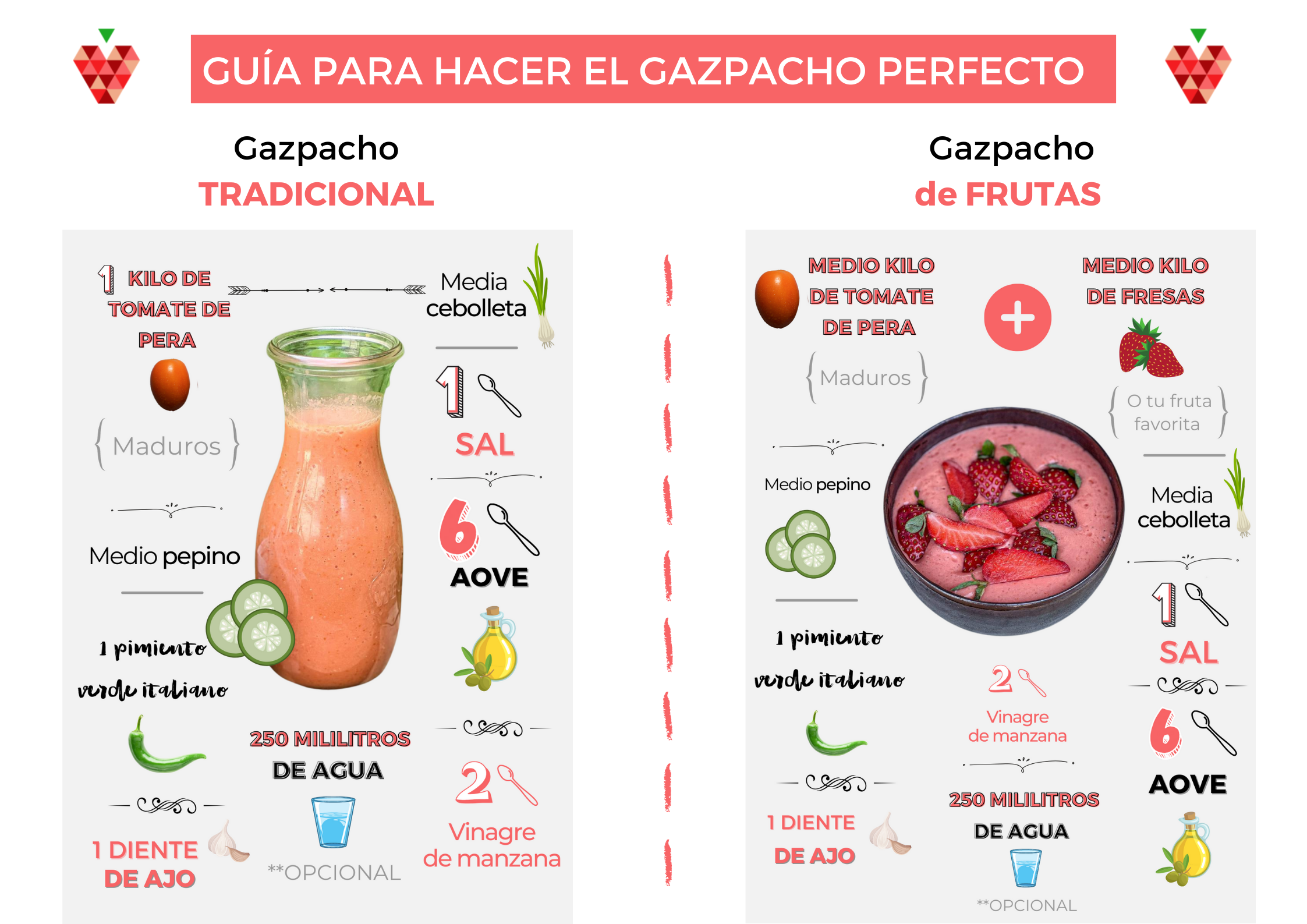 - ¿Puedo añadir otras verduras al gazpacho? ¡Por supuesto! Pepino, cebolla, incluso un poco de apio pueden enriquecer el sabor.