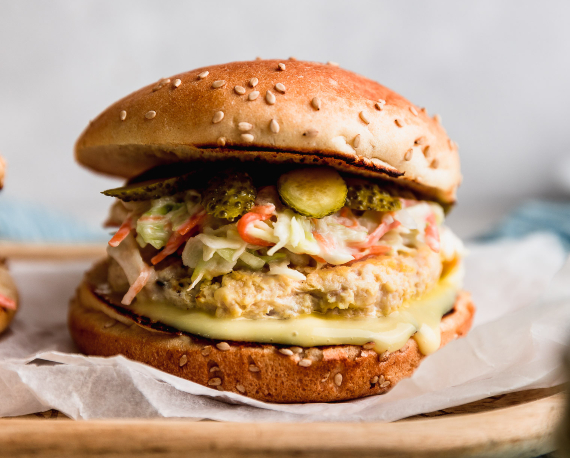 5. Hamburguesa de Pollo con Aguacate y Queso de Cabra